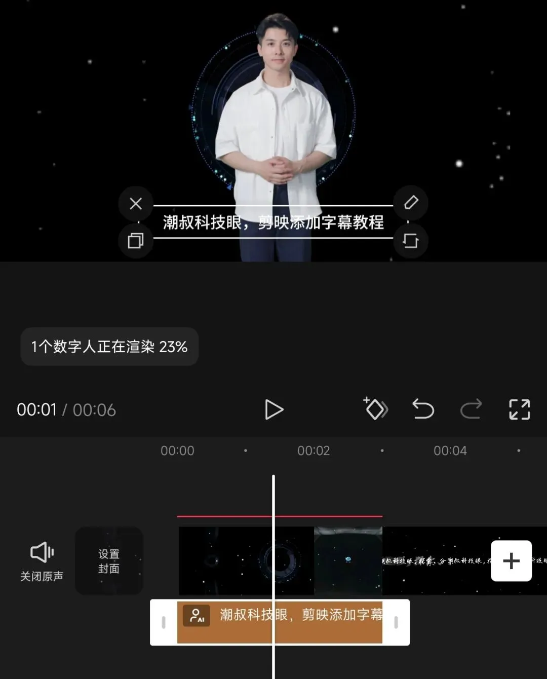 当我们使用上述方法添加字幕后,除了基础操作外,批量添加的字幕都能批量调整位置、样式、动画等,以AI配音添加的字幕为例,选中任意一段字幕,底部菜单栏就会看到「编辑字幕」按钮,如下图所示。