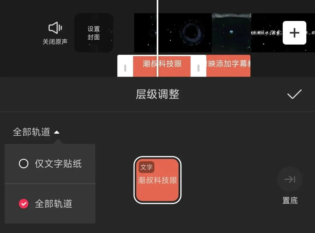 ①层级:如果你添加字幕时,还添加了贴纸,字幕可能被贴纸遮住,这时点击层级就能解决,如下图所示。