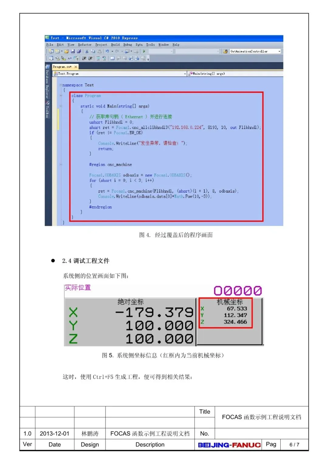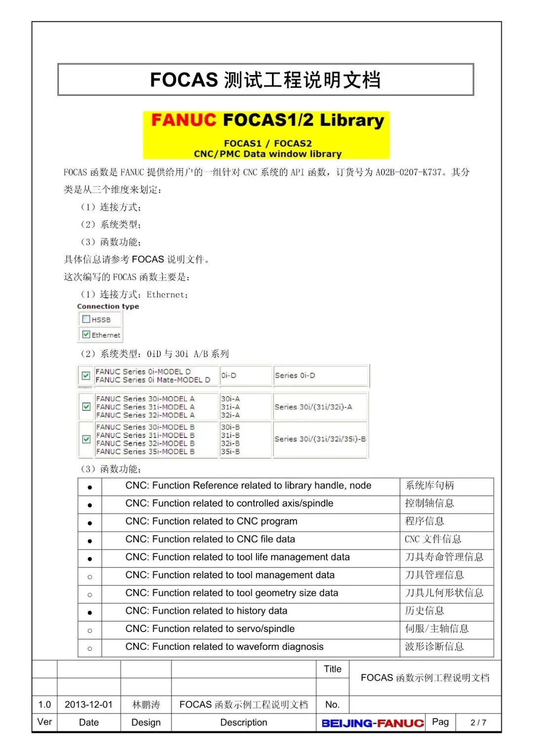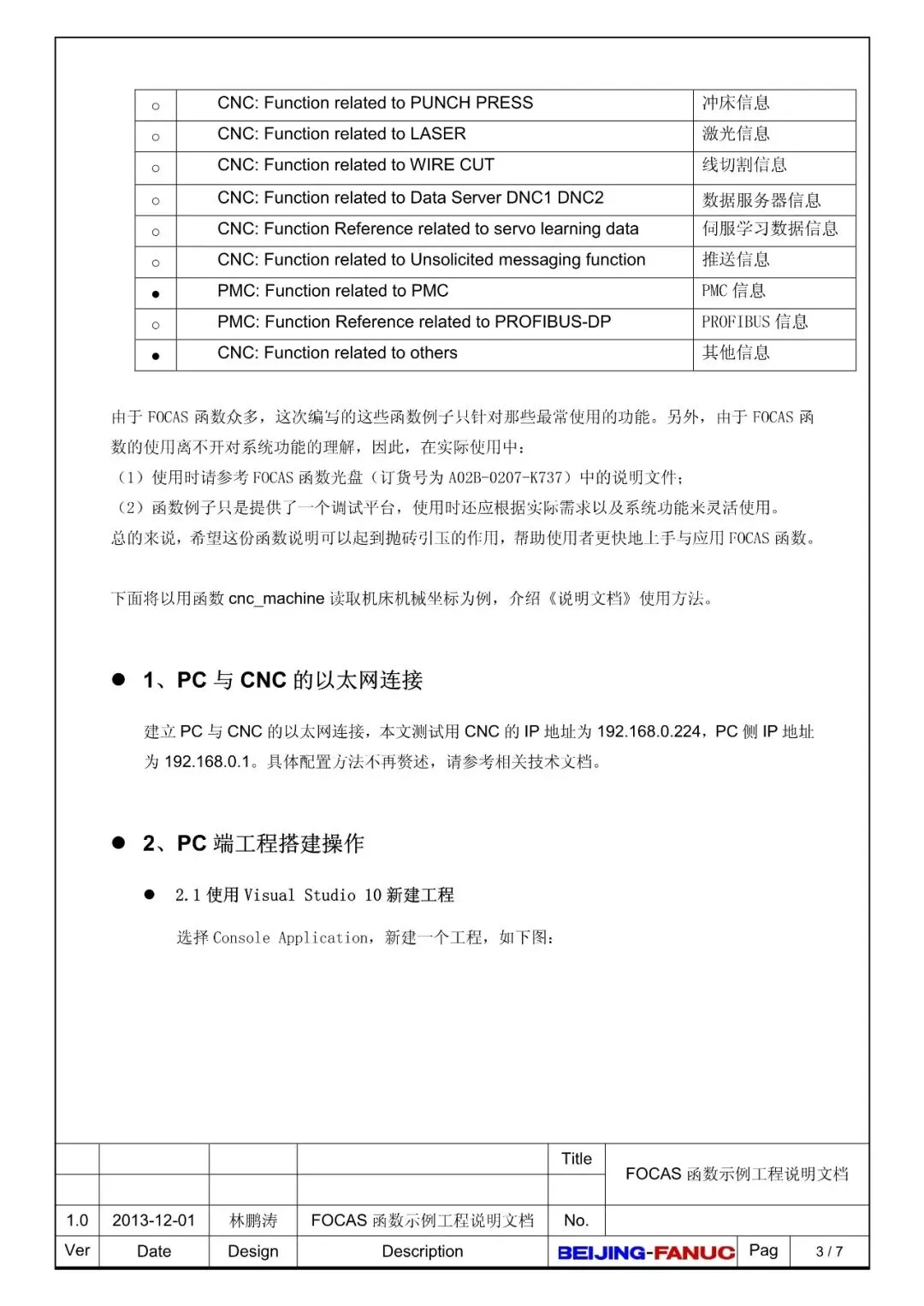 FANUC FOCAS函数示例工程说明文档