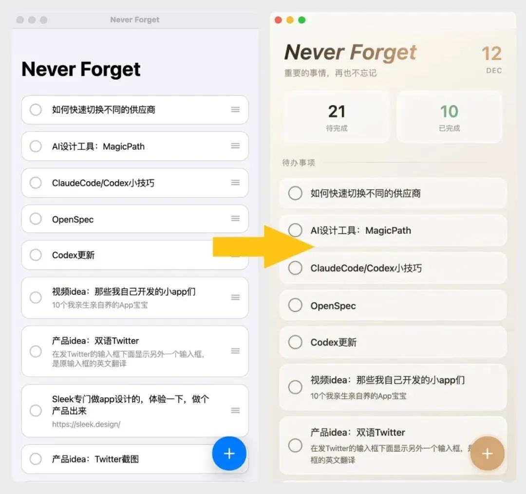 用一句话把你的 APP 从这样➡️变成这样: