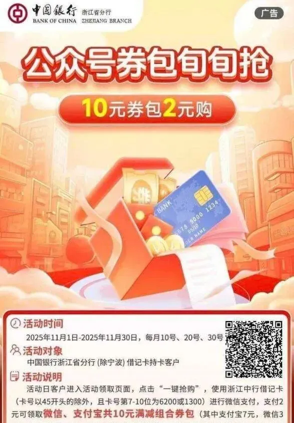 杭州中行2买10,上海中行55,携程app1000-50+,华夏最高88等多个羊毛