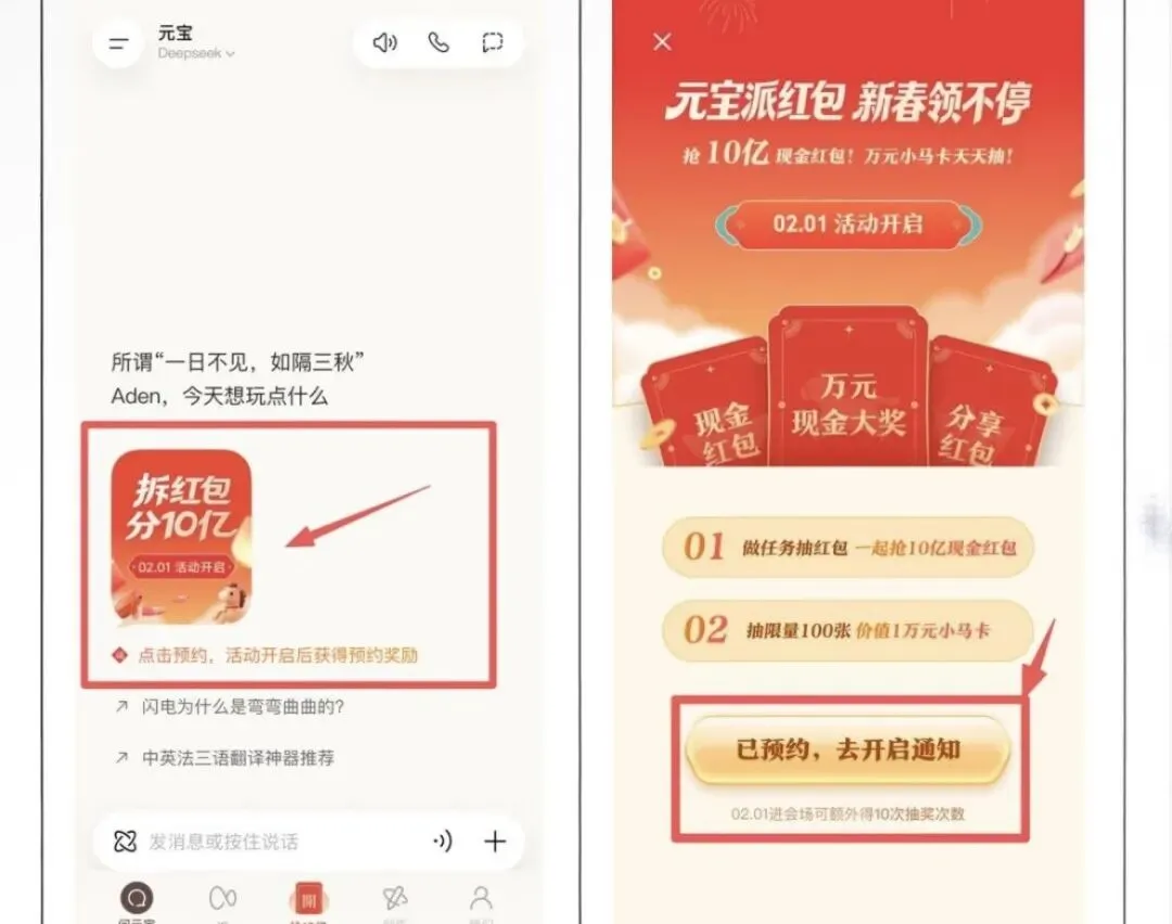 3. 参与互动:2月1日起,通过体验AI功能、邀请好友等方式获取红包资格