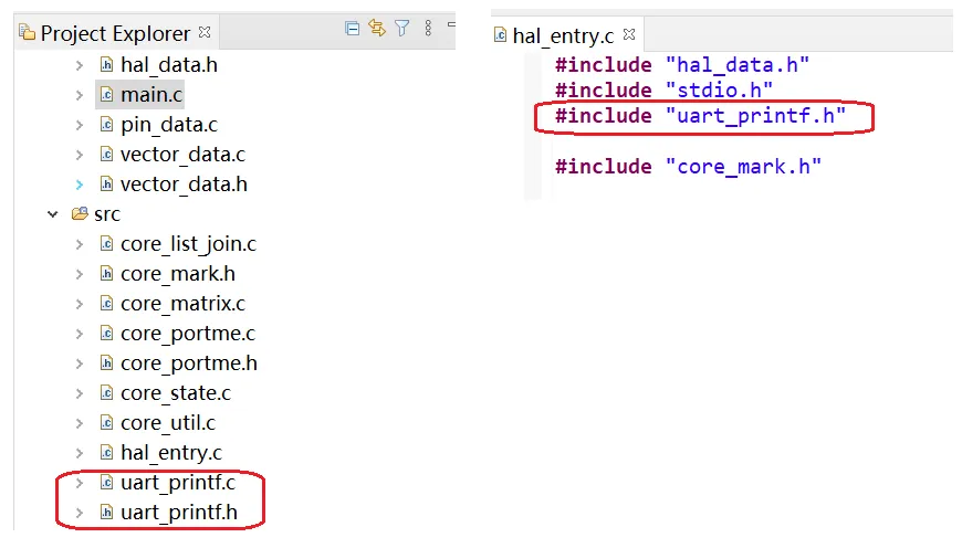 在hal_entry.c文件里面添加串口打印的头文件,用来调用串口打印函数。