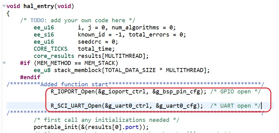 在hal_entry函数里面添加打开串口功能的函数,如下图红色框内: