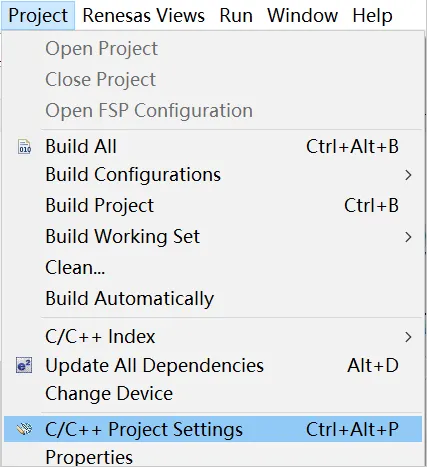 e2 studio编译环境默认是不能打印float字符的,点击菜单栏的Project->C/C++ Project Settings,进入该界面进行配置,如下图: