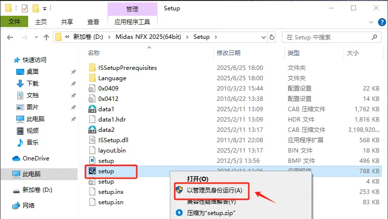 第四步:选中【Setup】右击,选择【以管理员身份运行】