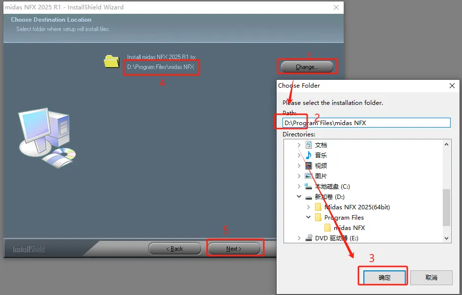 第九步:通过点击【Change】,将安装位置改为D盘,然后点击【Next】。