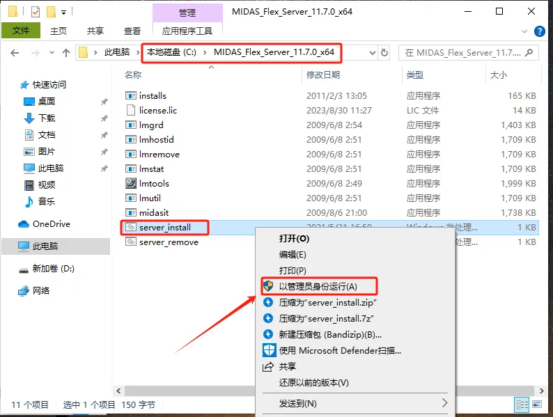 第十九步:打开C盘拷过来的【MIDAS_Flex_Server_11.7.0_x64】文件夹,选中【server_install】,右击以管理员身份运行。