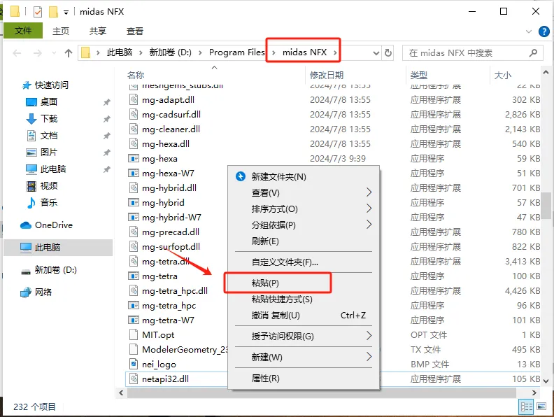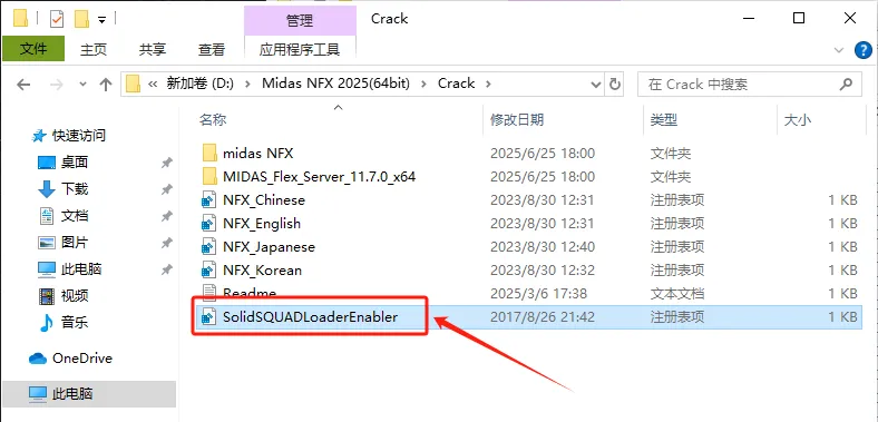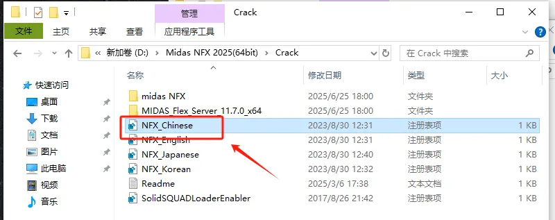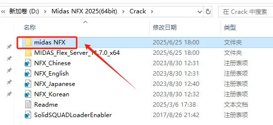 第二十一步:返回第二步解压的文件夹中的crack文件夹,找到【midas NFX】文件夹并打开。
