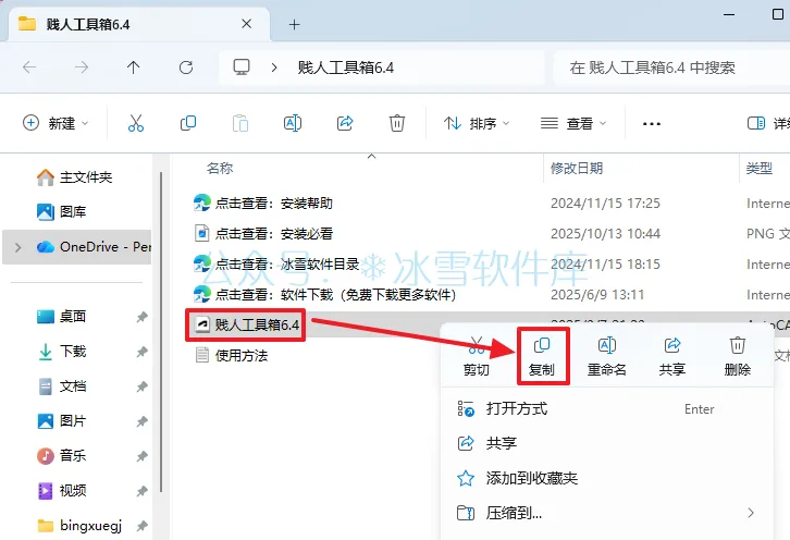 1.解压安装包:①鼠标右击【贱人工具箱6.4】压缩包②选择电脑上安装的解压软件(如:WinRAR压缩)③点击【解压到 贱人工具箱6.4】。
