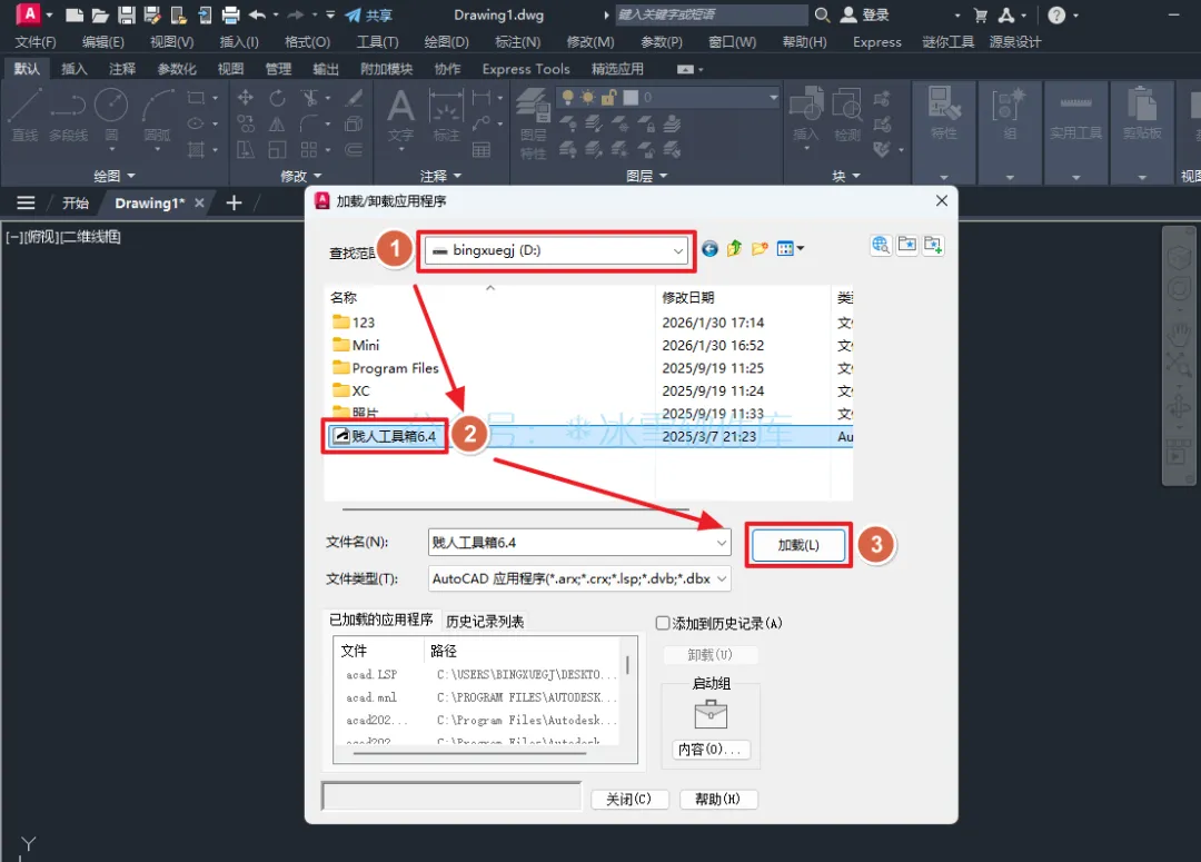 6.找到并打开第3步中复制粘贴的磁盘,选中【兼任工具箱6.4】文件,然后点击【加载】。