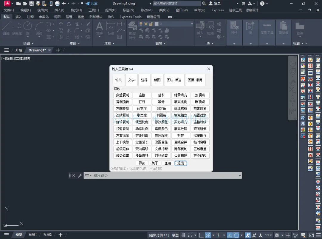 下载后,通过 AutoCAD 直接加载即可使用。加载完成后,输入指令 “y” 或 “yy” 就可以打开贱人工具箱