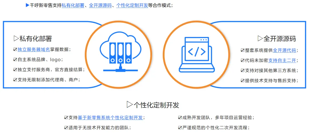 1.OEM私有化独立部署:代码加密,适用于没有技术团队的中小软件公司或连锁零售企业,经营数据独立管理,可将系统更换成自己的品牌logo,无门店开户数量限制,支付手续费没有中间商赚差价,系统可永久使用。