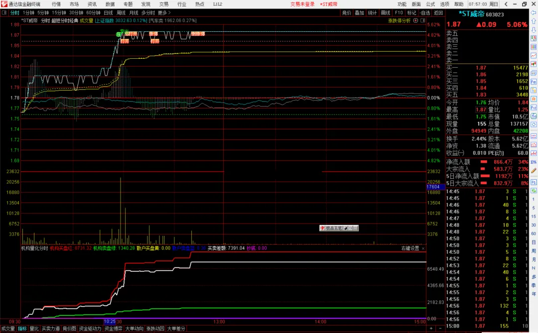 买卖差额:机构买盘红-机构卖盘绿,COLORWHITE,LINETHICK2;