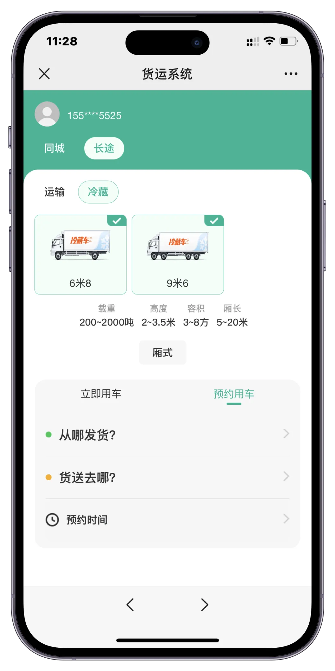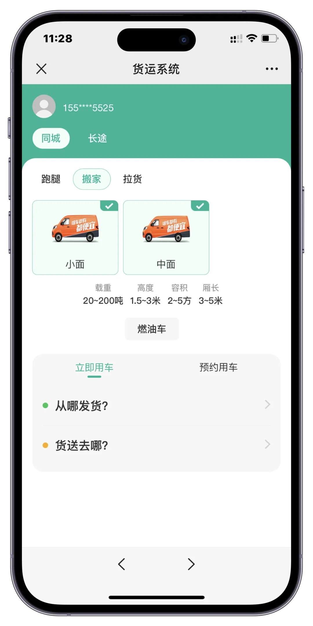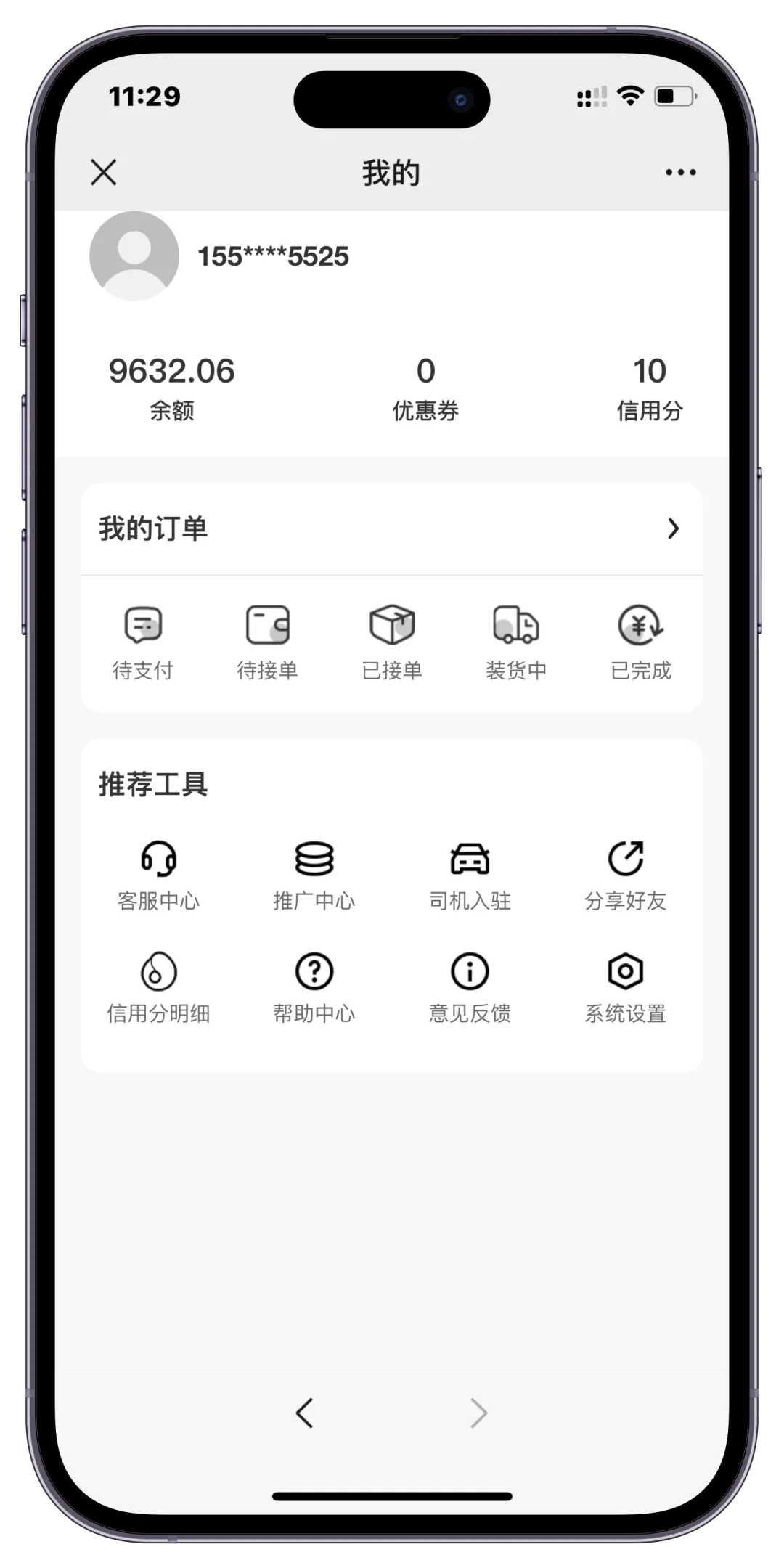 货主选择服务类型、车厢、车型后发布订单(技术实现:服务-车型-车厢关联表+实时价格计算)。新用户可领取新人优惠券,充值金额亦支持优惠券配置。 - 订单追踪与投诉