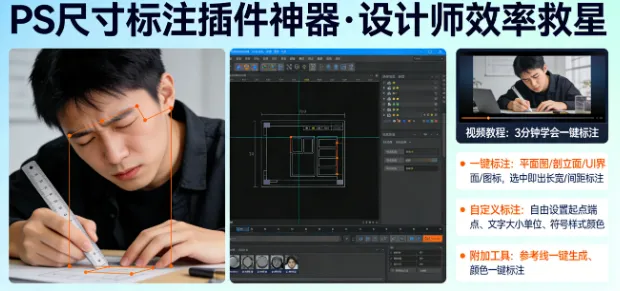 设计师的时间,应该花在创意上,而不是浪费在手动标注这种重复性工作上!这款PS尺寸标注插件,操作简单、功能实用,全中文界面没有学习成本,不管是新手设计师还是资深老炮,都能用到飞起~