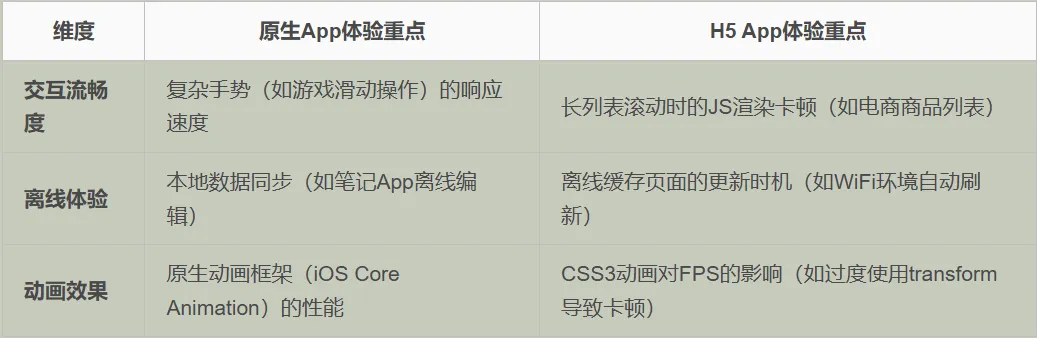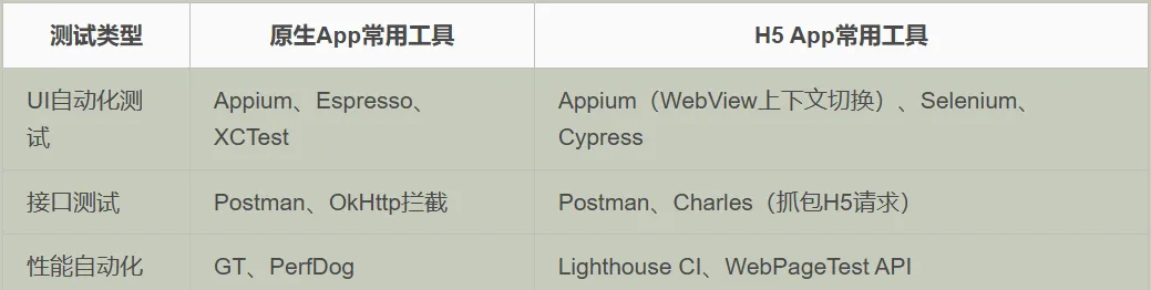 原生App测试需聚焦本地能力集成、设备兼容性、性能优化,而H5 App测试更关注WebView兼容性、JSBridge交互、网络依赖风险。