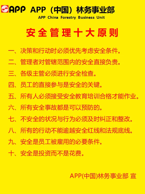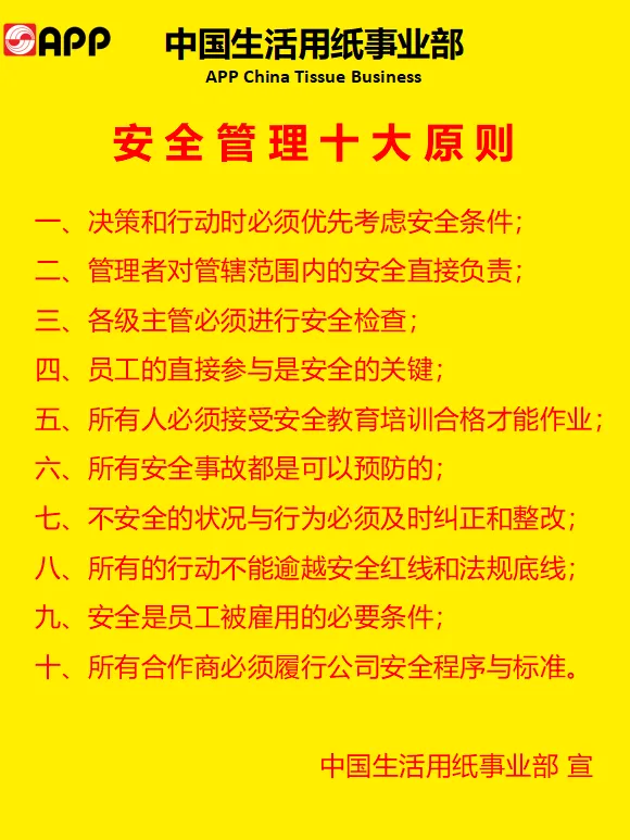 金光集团APP(中国)各级主管率先垂范,在总裁五大精神指引下,在日常工作中带领我们广大员工坚守安全行为准则,践行安全价值观,遵循安全方针,牢记安全使命。为创建安全文化,提升安全绩效,实现安全愿景,达成双零锁定的安全目标而努力奋斗!