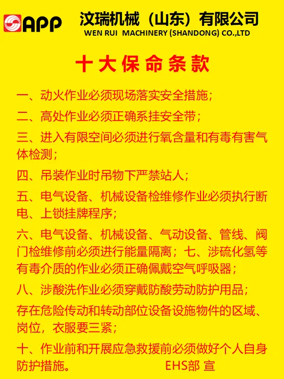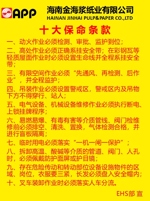 《安全管理十大原则》、《安全十大禁令》、《十大保命条款》、《检维修安全十确认》