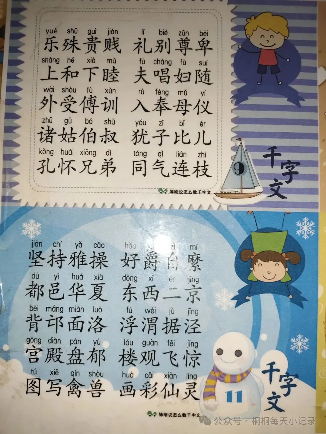 回想桐桐不到三岁时,我也曾跟风焦虑,刷到抖音上别人教孩子识字,便跟风用了识字APP。可没多久,孩子就被APP里的动画吸引,注意力全不在识字上,加上电子产品不宜久看,这套方法只能作罢。后来我又尝试让孩子读《三百千》,打印了《千字文》,孩子一个月就能每天背40字,可我自己都不懂文中的含义,根本没法给孩子讲解。