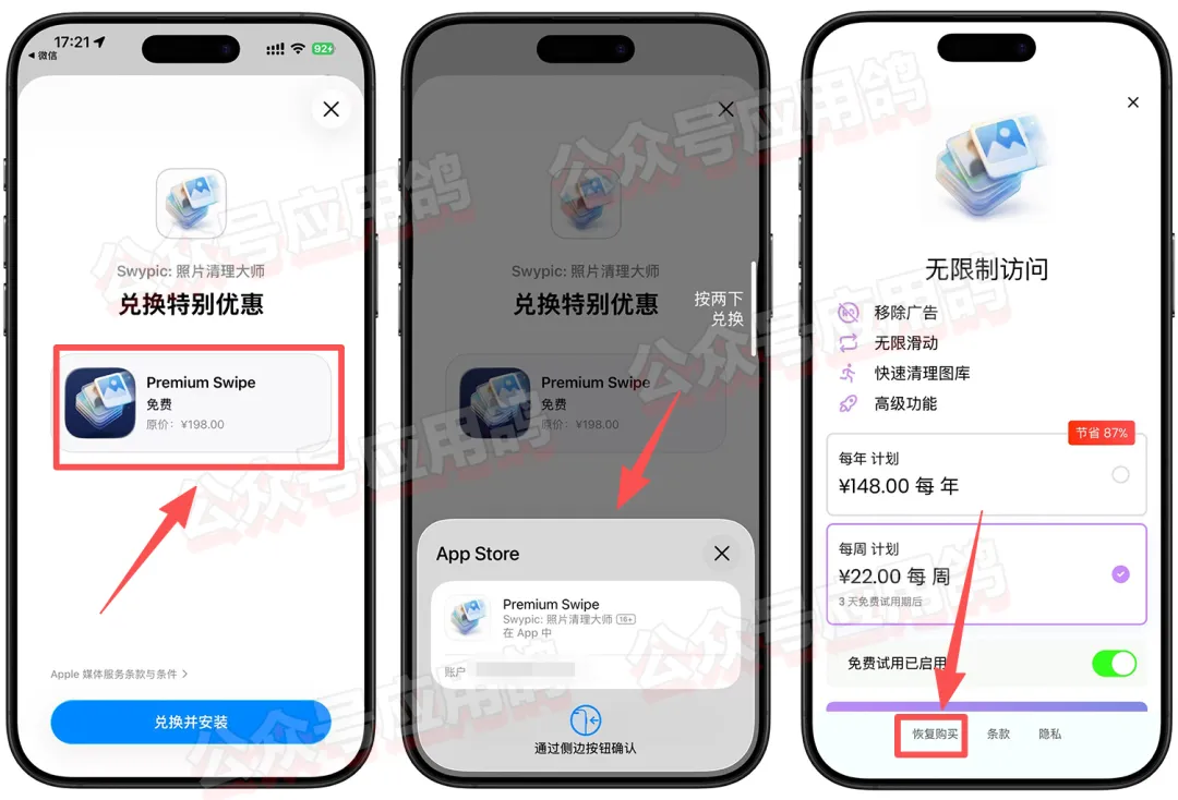 目前可以通过兑换码,免费获取它的终身会员,兑换完成后首次打开软件会弹出内购,点击底部的恢复即可。如果显示无法兑换,说明已经兑换完了,限免结束了