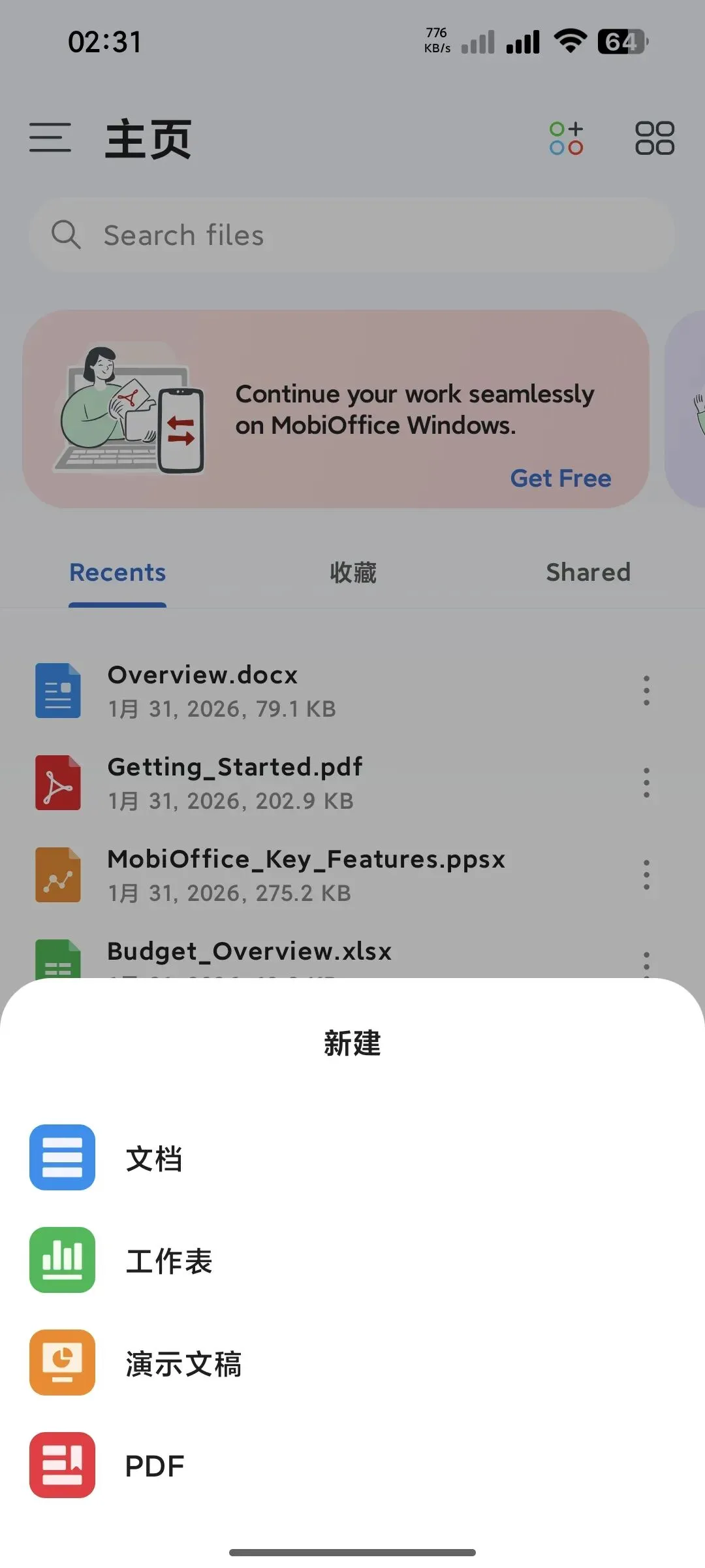 它主打一个“集成”的概念,试图将我们最常用的几大办公需求——文档、表格、幻灯片、PDF——整合进一个应用里,让你在手机上也能应对轻度的办公任务。
