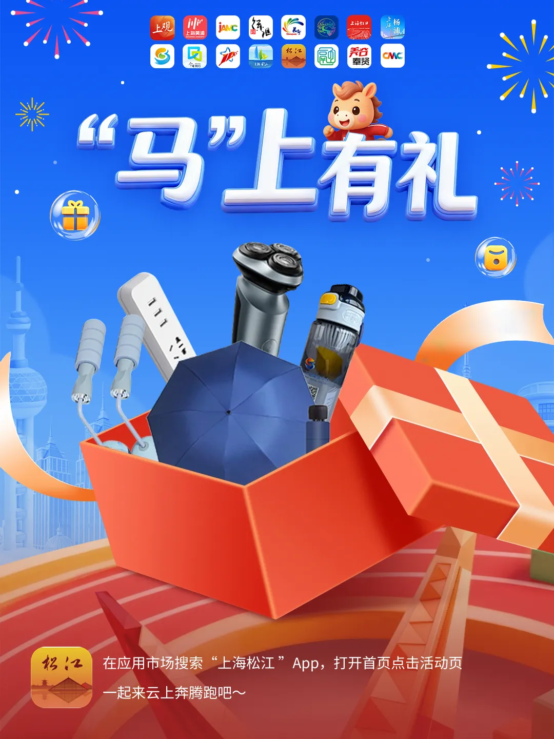 本次松江专属奖池主打“实用+贴心”,奖品包括飞科剃须刀、飞科多功能插座、融媒定制雨伞与水壶,还有适合居家锻炼的跳绳等日常好物,为用户送上一份看得见、用得上的生活“小确幸”。