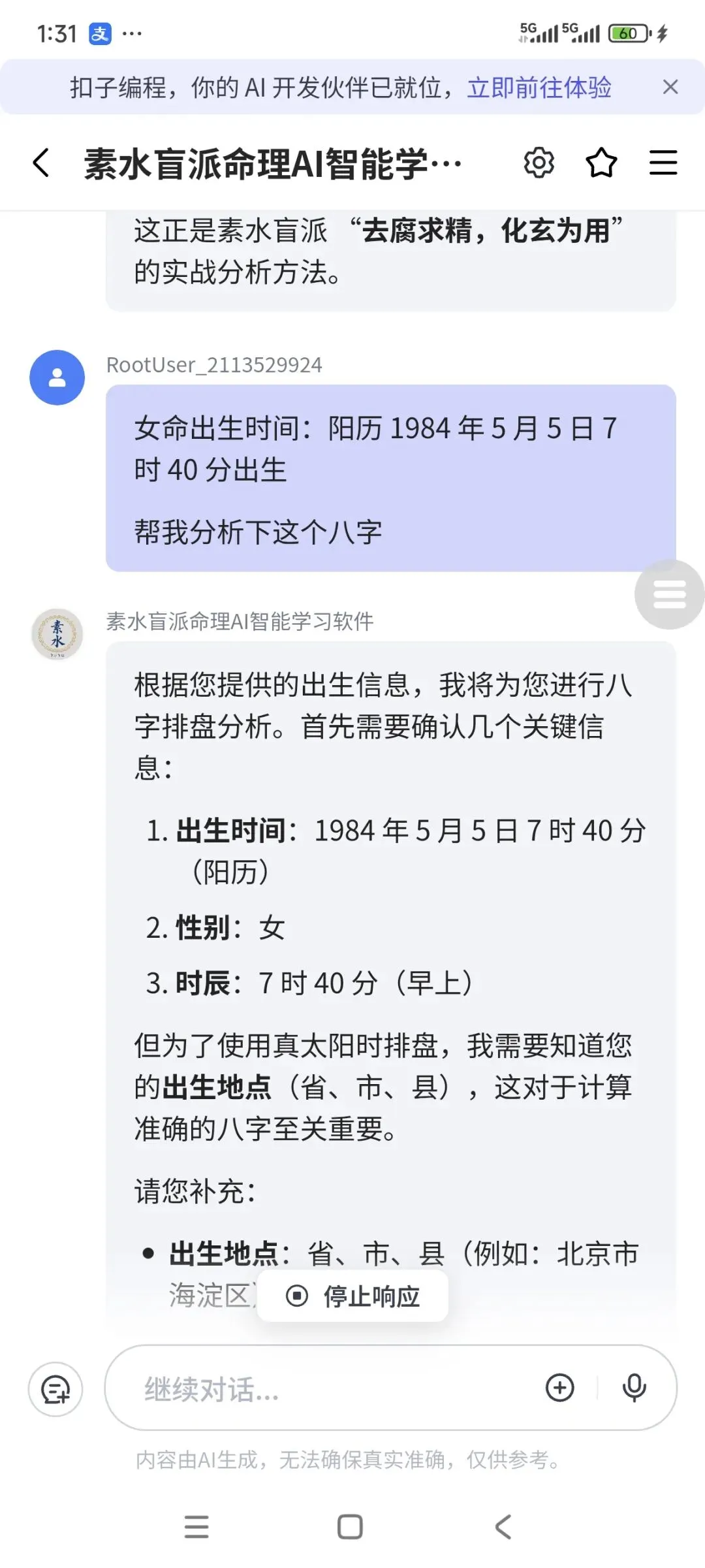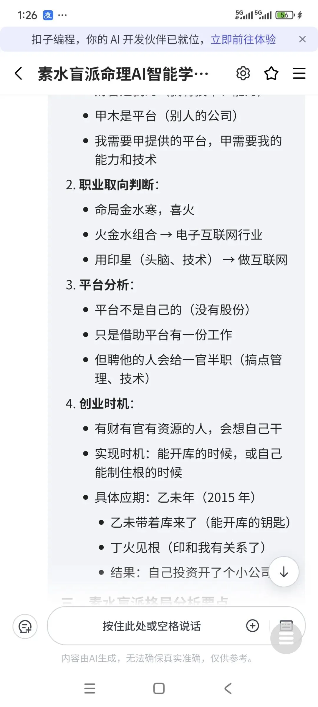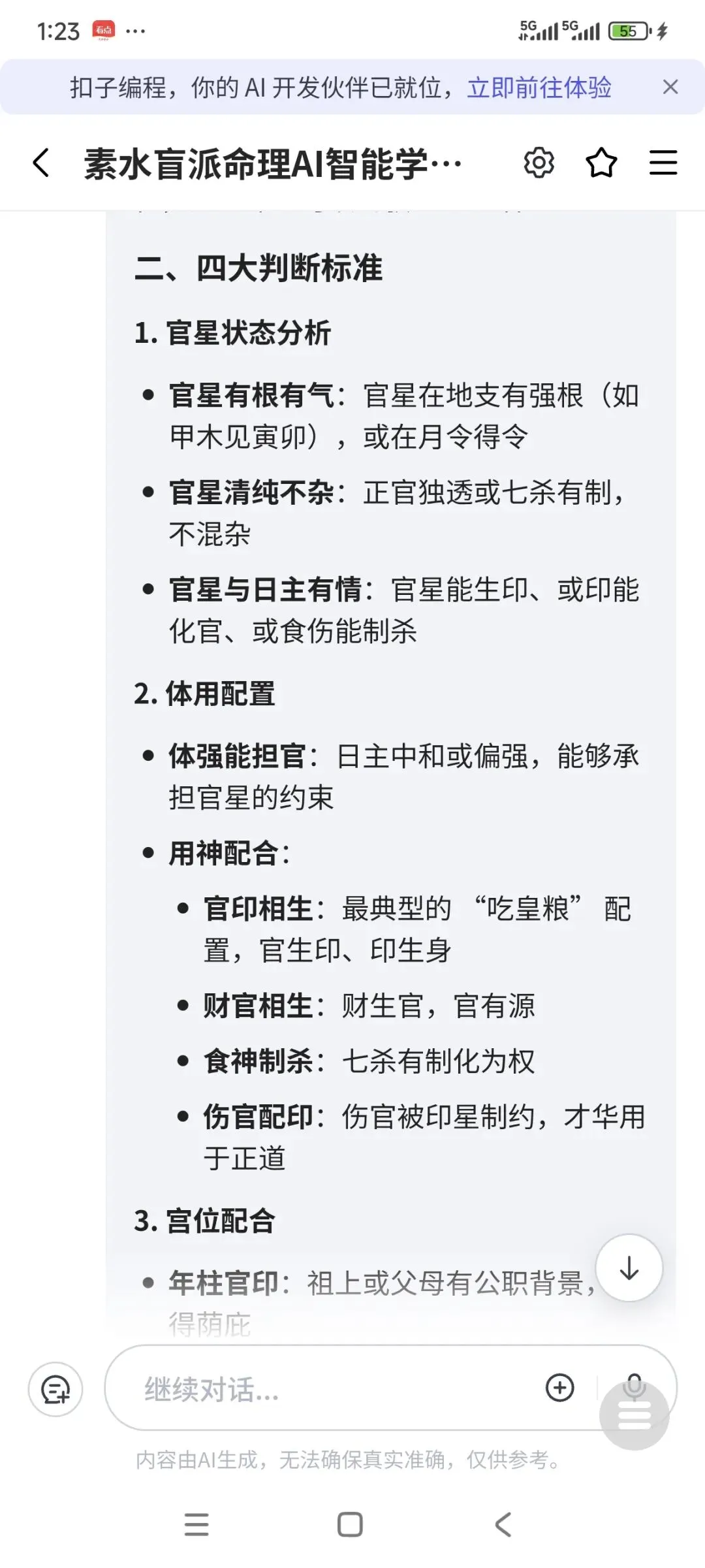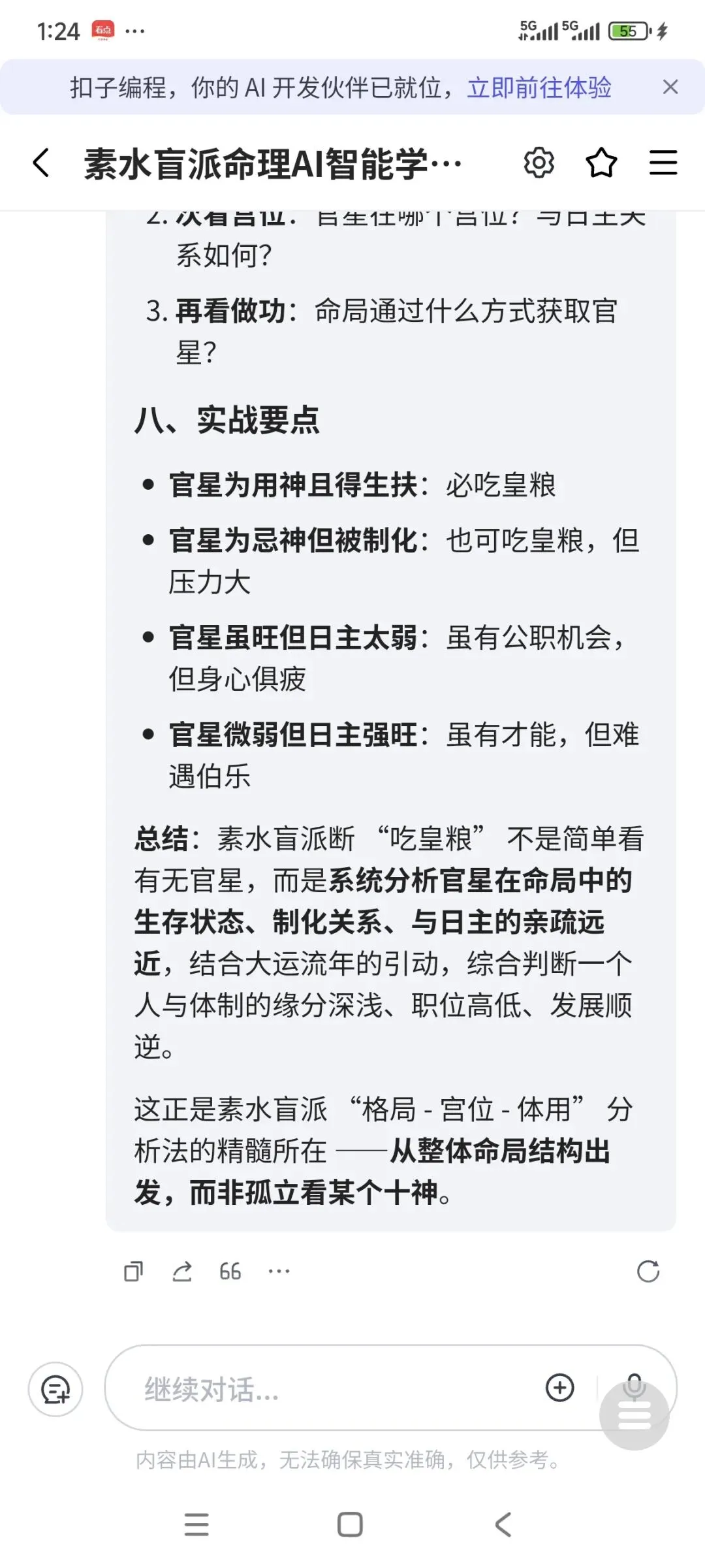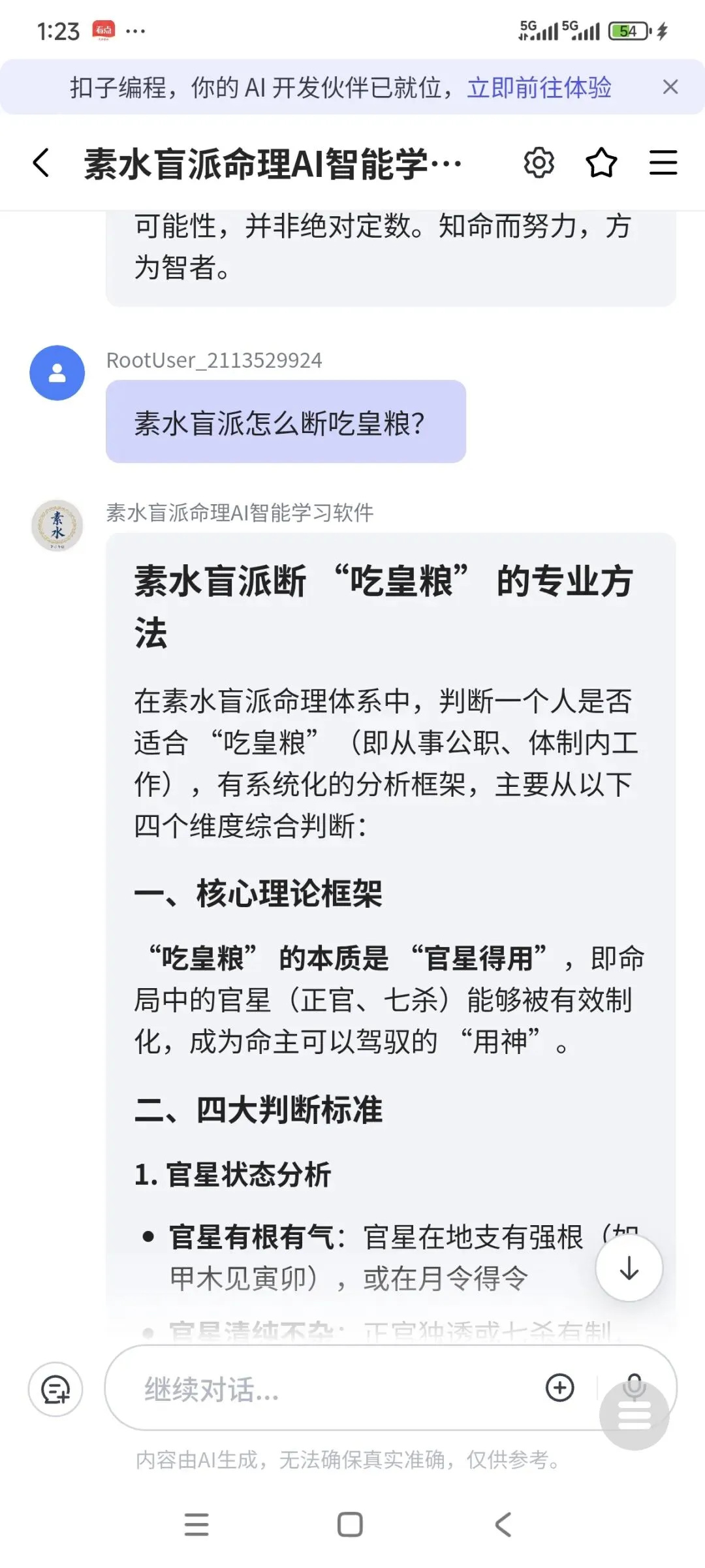 素水盲派AI智能助理软件三个月使用期,能和AI进行素水盲派命理知识问答,让AI总结提炼知识点,随时携带的资料库,还能让AI帮助预测分析八字,一起探讨有疑问的地方。