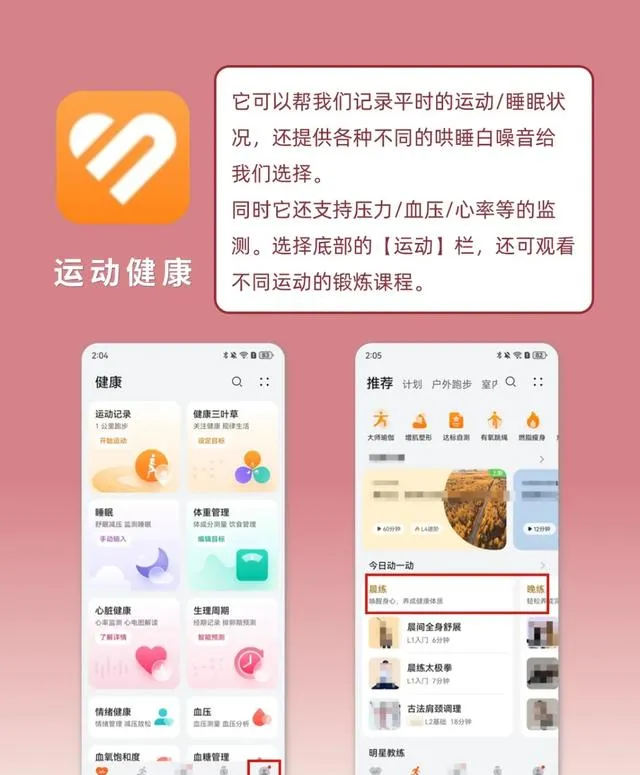 第三个不得不提的就是“运动健康”。你可能觉得这玩意儿就是计步数?那真是低估它了。实测下来,这APP简直是随身的健康管家。不只是每天走了多少步,还能用手机本身监测心脏健康,直接贴胸口,房颤、心律失常这些大问题早发现早预防,对家里老人来说特别实用。晚上睡觉,手机放在床边,它能监测你的鼾声和呼吸暂停风险,第二天生成睡眠质量报告,给出改善建议,不用专门买智能手表、手环。平时压力大、焦虑的时候,点开APP做几分钟呼吸训练,真的有助于缓解情绪。更别说健身课程库,各种瑜伽、拉伸、燃脂操随便选,无需再装一堆健身APP,也不用花钱买会员。