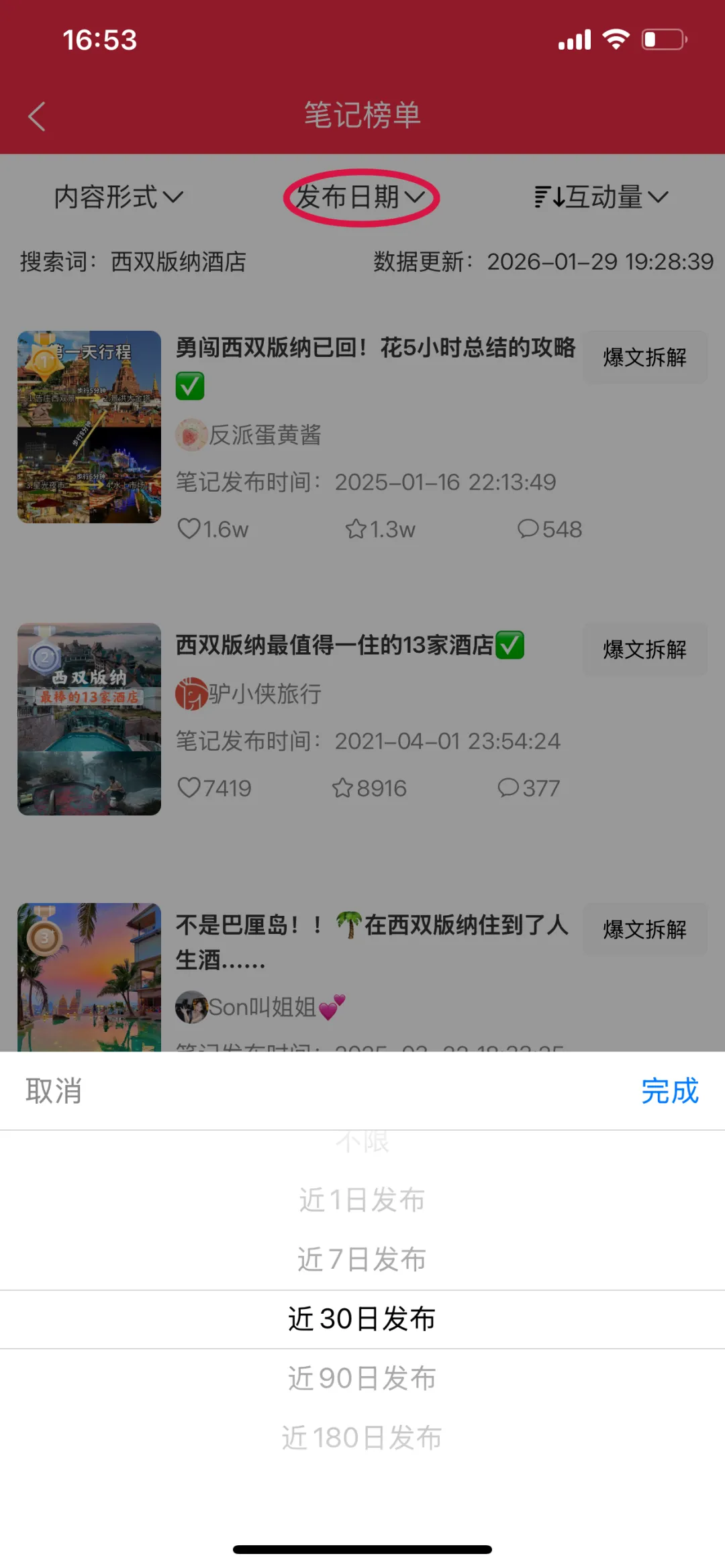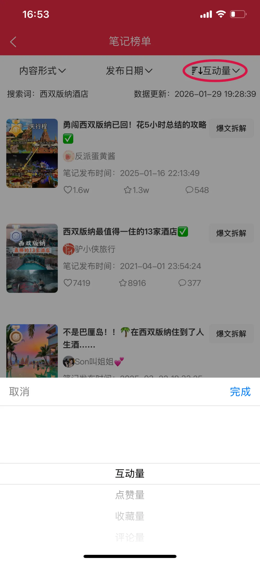 3. 通过内容形式、发布日期筛选项和互动量、点赞量等排序项,进一步个性化榜单