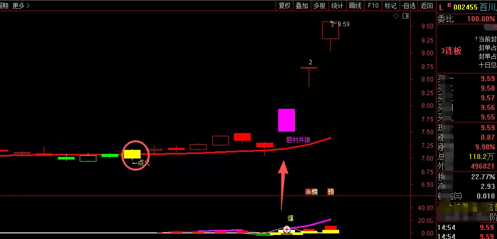 DRAWTEXT(起爆1,L*0.98,’题材共振’),COLORMAGENTA;