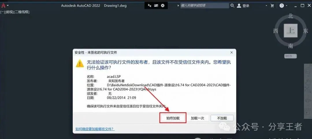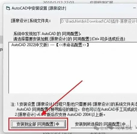 1.把资源从网盘下载到电脑上面,右键压缩包选择解压到当前文件夹。 ![]() 2.打开解压后的文件夹,双击打开【sys】文件夹。 ![]() 3.鼠标右击【setup】选择【以管理员身份运行】。 ![]() 4.点击【安装到全部】。 ![]() 5.点击【确定】。 ![]() 6.打开电脑上安装的CAD软件。 ![]() 7.点击【始终加载】。 ![]() 8.安装成功! ![]() |