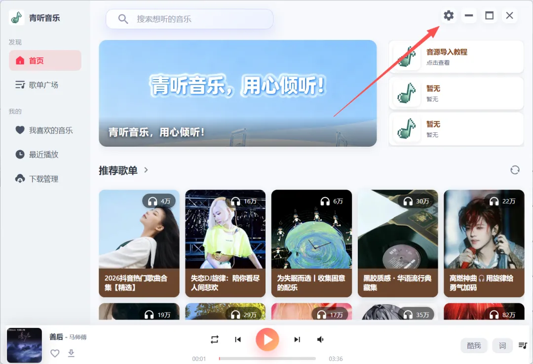 音源地址:https://13413.kstore.vip/QingMusic/music.json