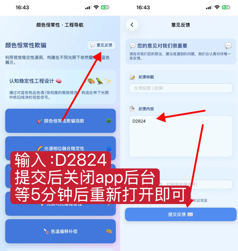4、提交反馈,划掉后台,等待5-6分钟重新进入
