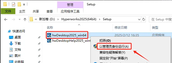 第十步:选中【hwDesktop2025_win64】右击【以管理员身份运行】。