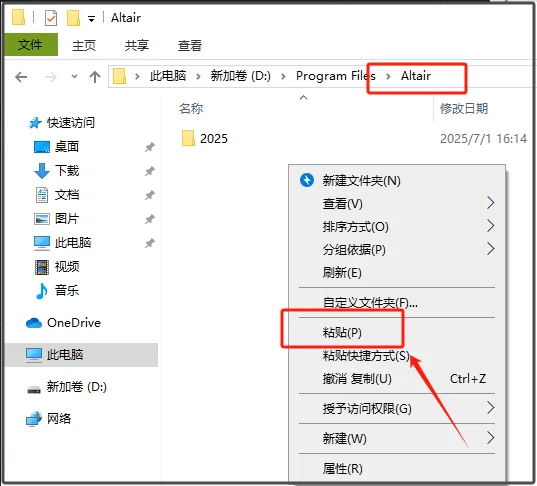 第二十七步:将刚刚复制的【2025】文件夹粘贴在此处。
