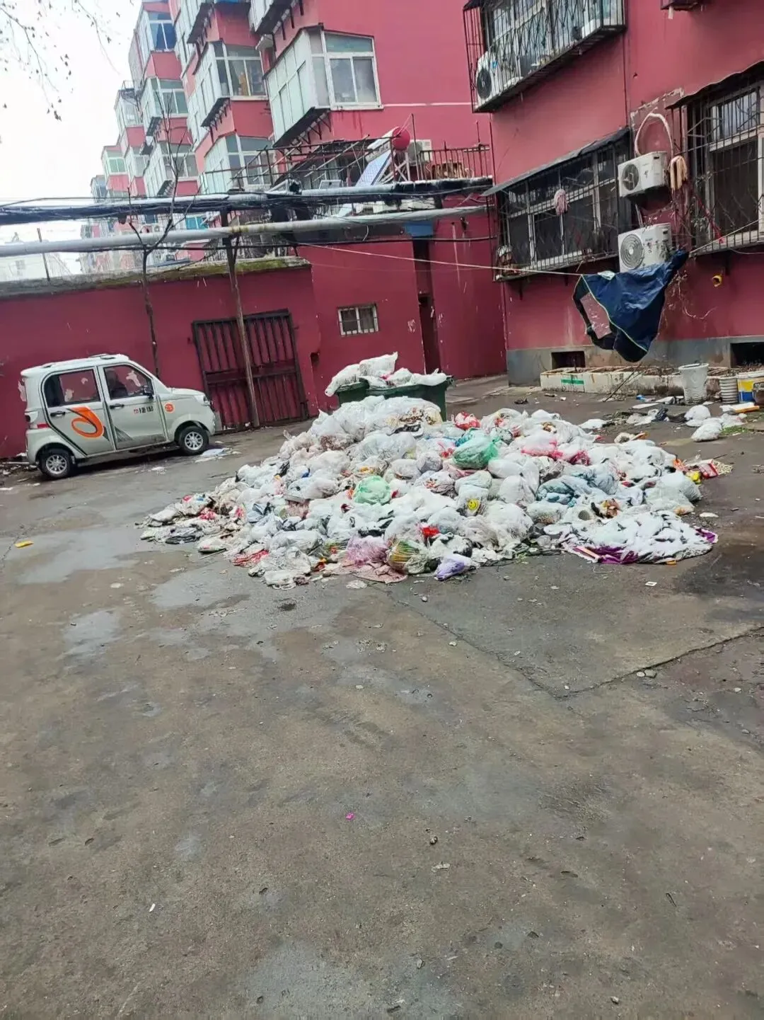 长空行云:卫东区十矿家属院行知小学东侧敬老院楼,垃圾已一个多月无人清运,临近春节,异味严重,急需清理。