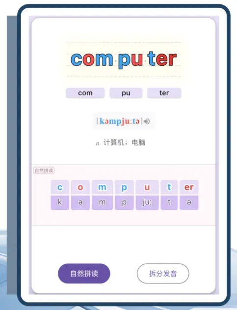 我最喜欢超级单词表的一个地方,就是它解决了自然拼读和音节拆分这两个背单词中的痛点。