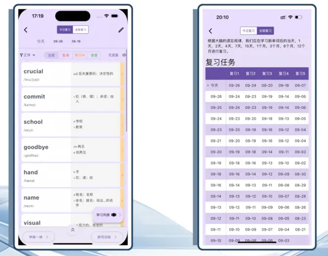 这样有助于可视化的追踪复习进度,帮助孩子更科学的记忆单词,同时养成科学的记忆习惯,增强记忆力。