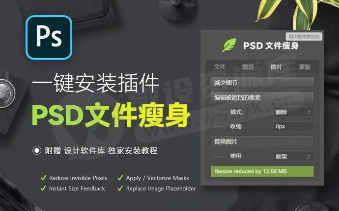 资源名称丨PSD文件瘦身插件一键直装汉化版