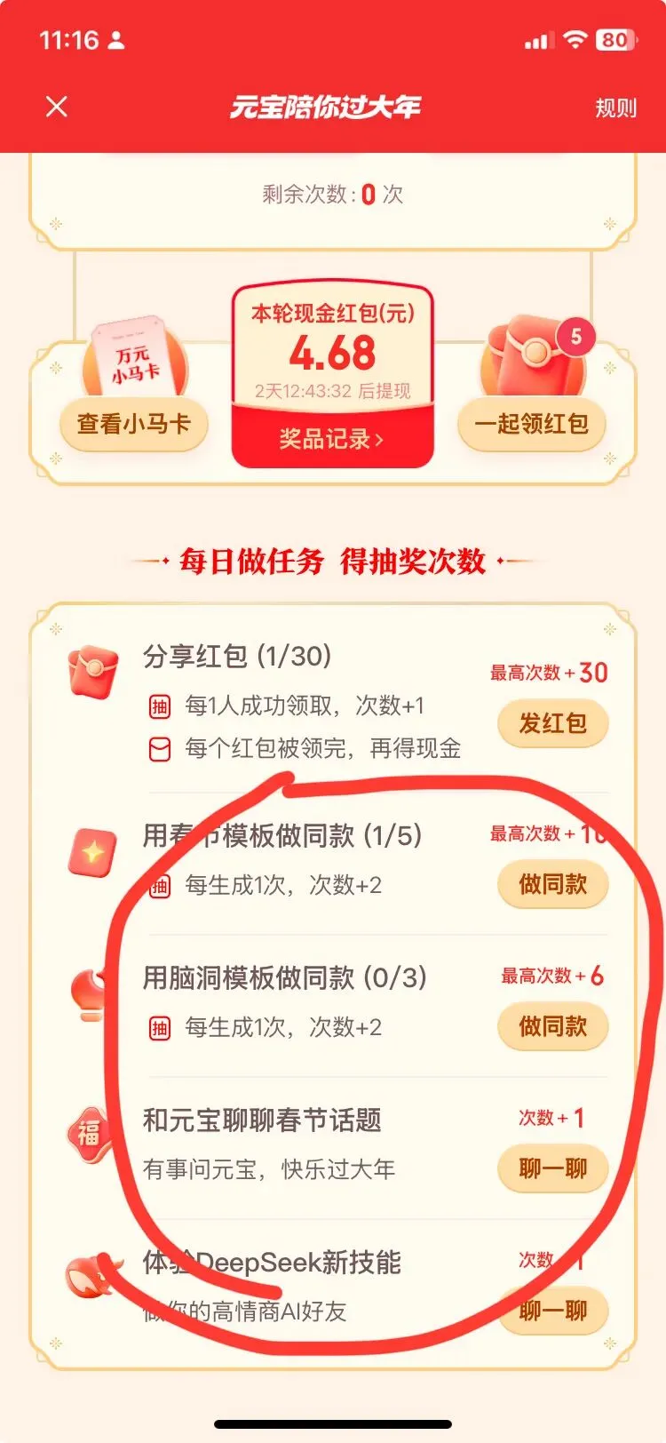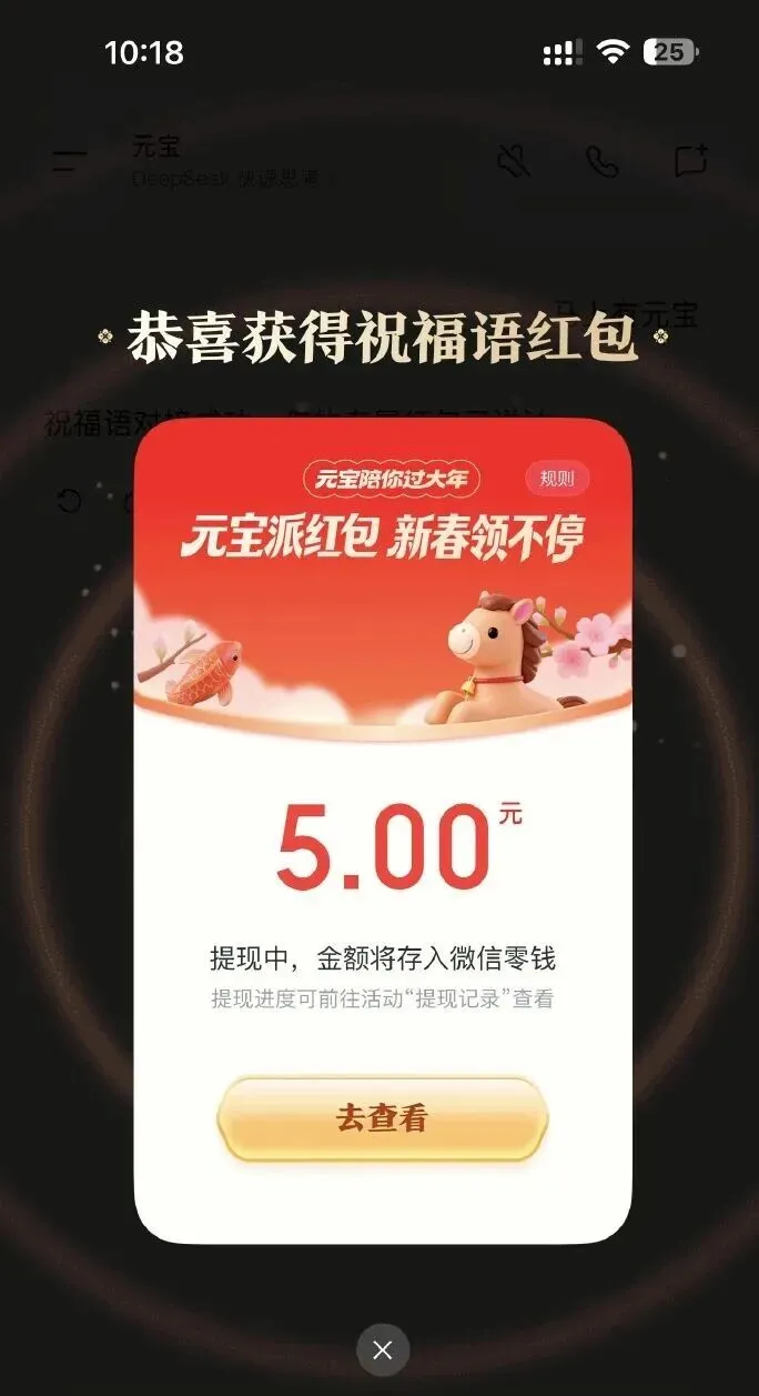 元宝App春节活动:复制口令,打开App,抢红包! HU1452 nlK:/C5AA058PZ3