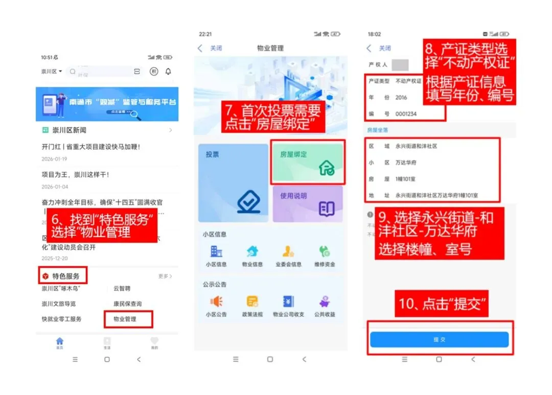 万达华府小区业主大会使用南通百通app小区业主投票功能进行投票的说明