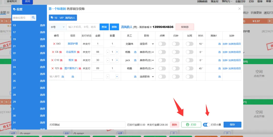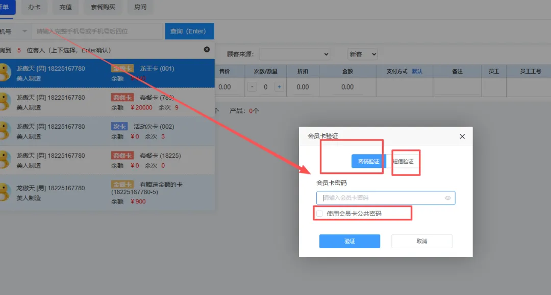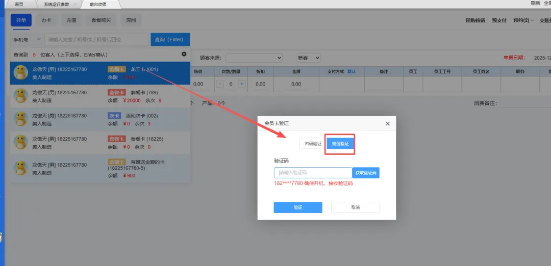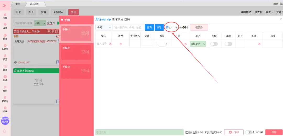 操作流程:前台收银—房间—点击会员信息直接看详情