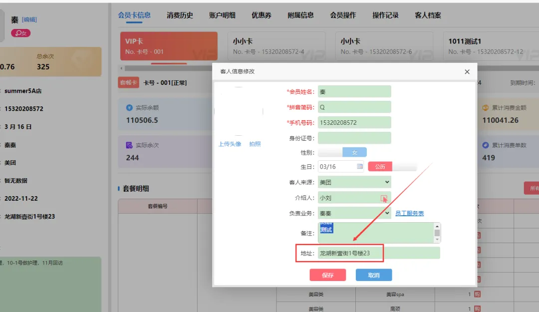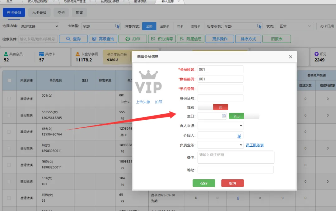 操作流程:客人信息里面双击会员信息可以快速进入会员信息编辑界面