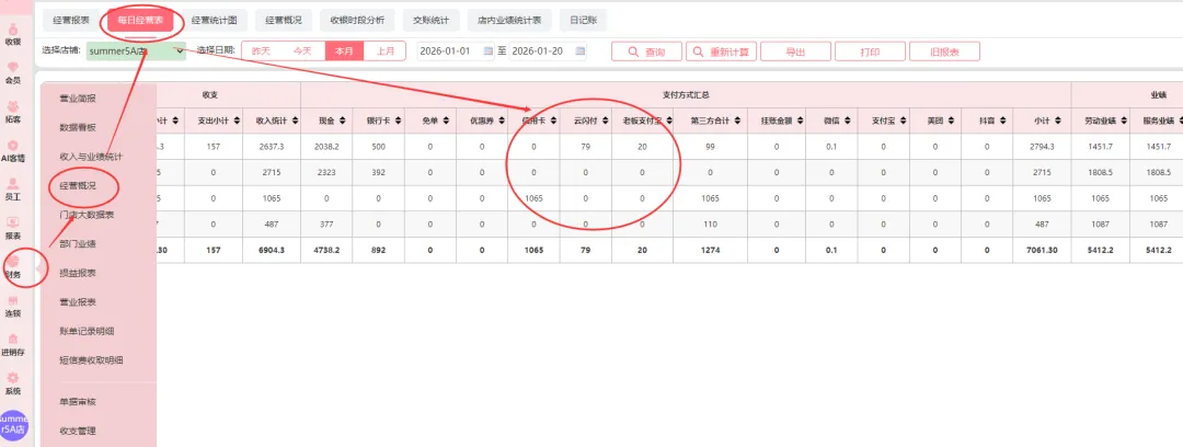 优化每日经营表中,显示具体的哪些第三方支付方式数据