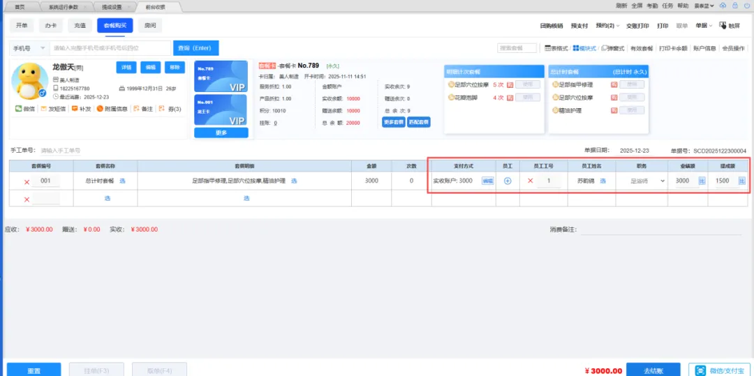 2)新增套餐购买区分卡金和现金支付等设置不同提成比例