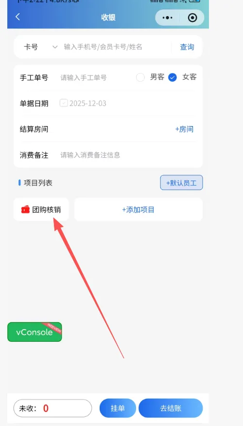 操作流程:旺点微员工—收银—团购核销(核销按钮界面也同步优化,和收银一致)