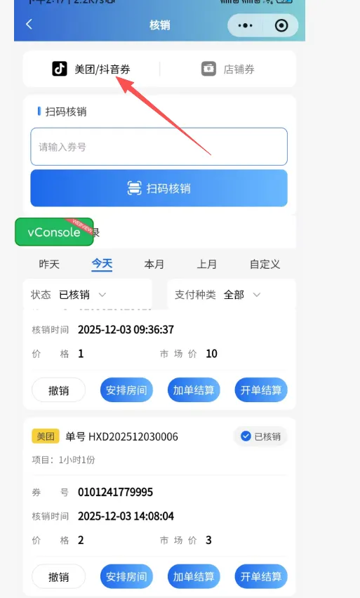 新增微员工小程序美团抖音核销二合一,收银界面新增团购核销功能