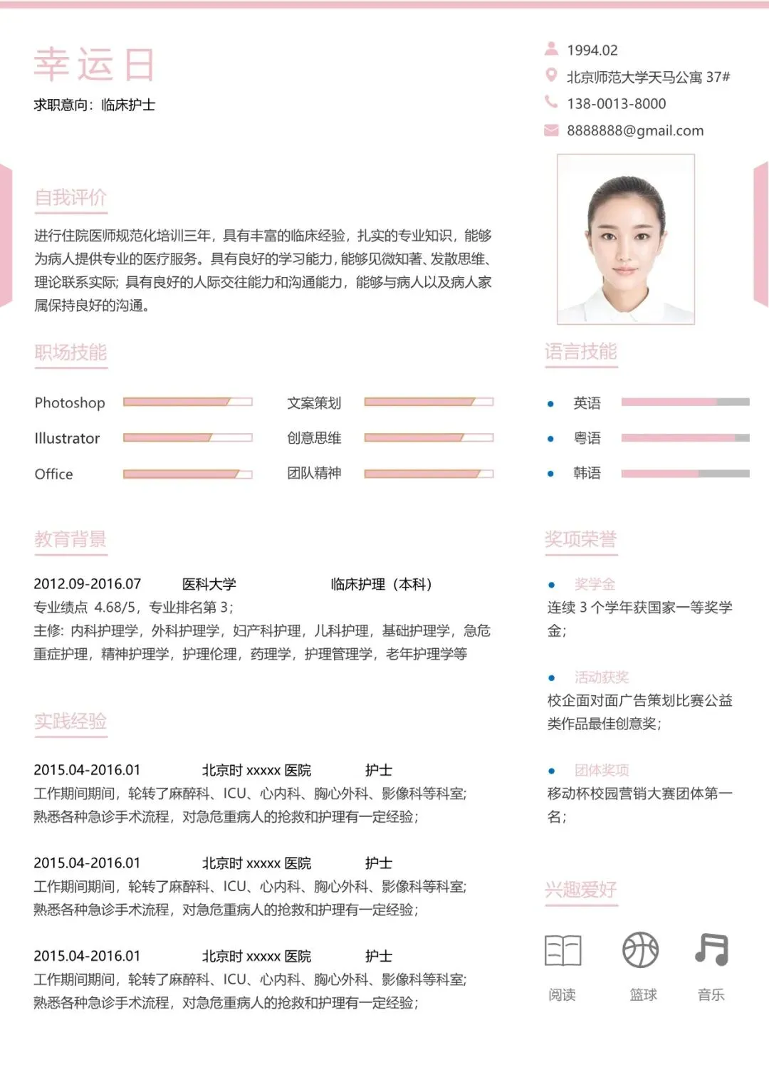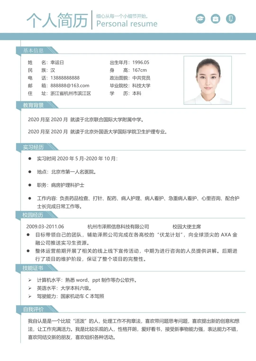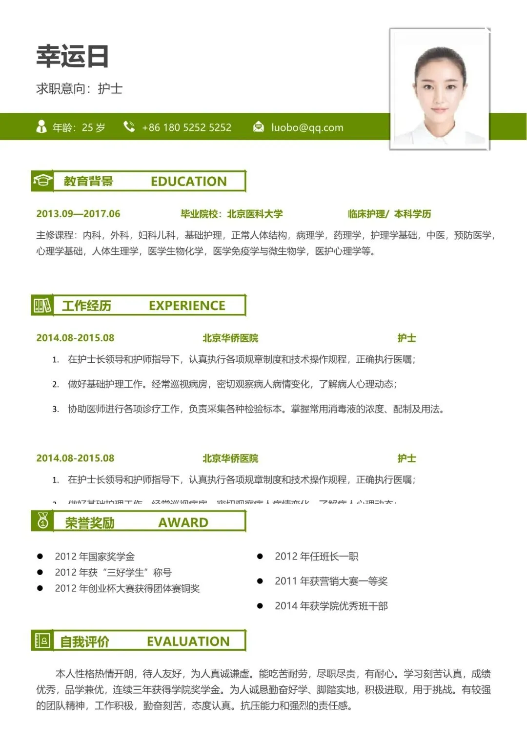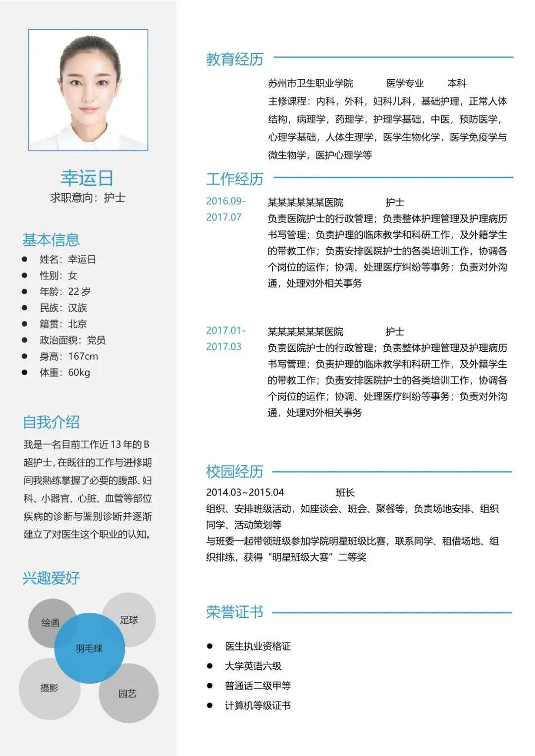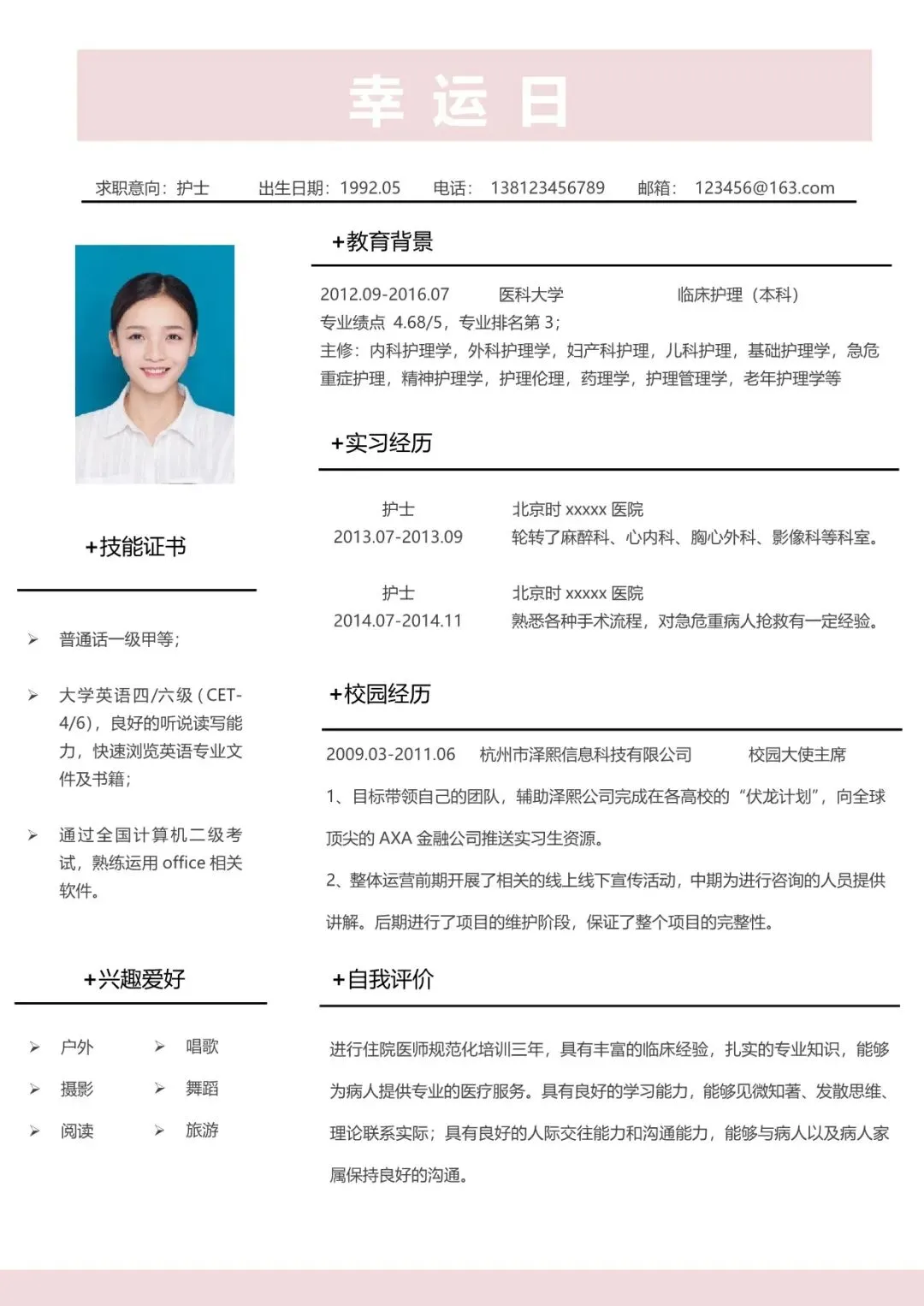 27款+护士简历模板,word电子版可编辑修改,免费下载!