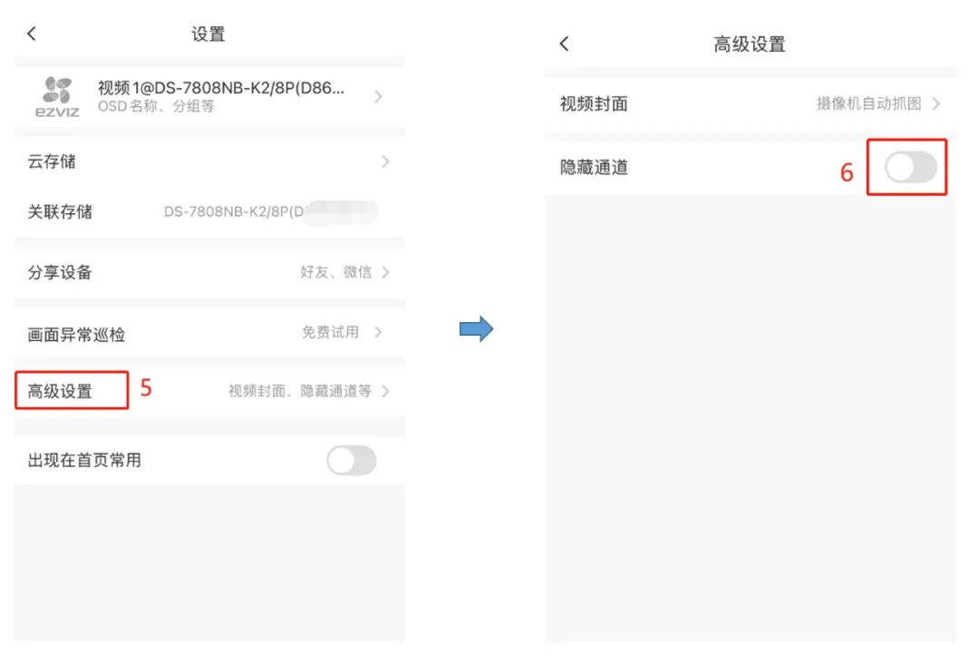 2、进入高级设置可以开启/关闭通道隐藏